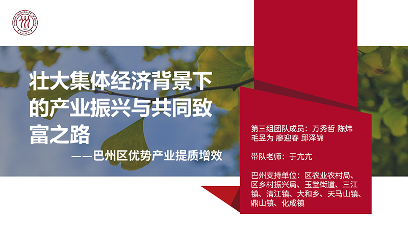 在2023年暑假临近尾声时,av影片日本-免費看日本av 组织2020级应用经济与区域发展管理双学位实验班26位本科三年级学生,奔赴四川省巴中市巴州区,开展了为期一周的专业实习活动。从市区街道到乡镇村落,从郁郁青山到广阔田野,农发学子遍履巴水河畔,用专业知识回应实践需要,讲好巴州大地上的乡村振兴故事。